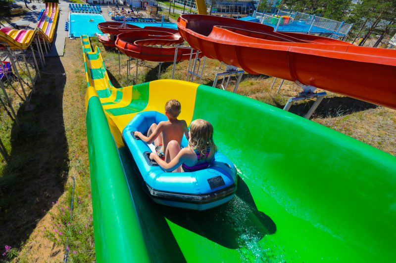 JukuParkissa on huikeita vesiliukumäkiä, joissa voi laskea renkailla, vauhtimatolla tai perinteisesti.