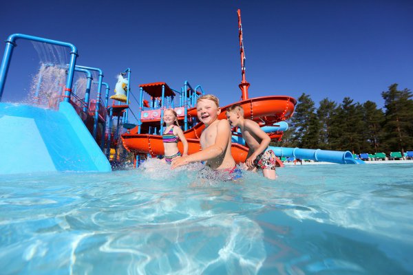 Suuri interaktiivinen WaterPlay-vesileikkimaailma, jossa on 6 erilaista vesiliukumäkeä. WaterPlay soveltuu niin pienille lapsille kuin perheen vesipedoille. Altaan syvyys 50 cm